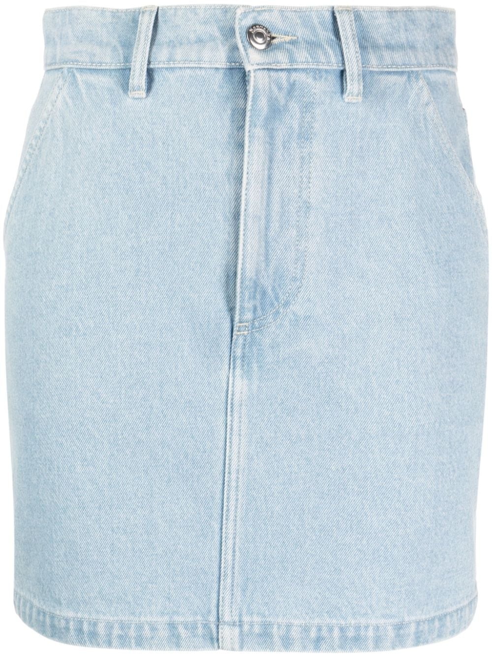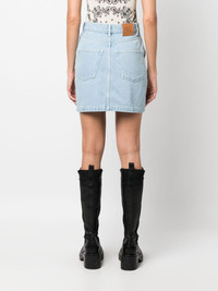 denim mini skirt Imagining a 'wardrobe for the modern human with the aim of creating a new informal form of beauty', Budapest-based Nanushka updates timeless silhouettes for AW23. Crafted from organic cotton, this denim skirt is cut for a high-waist and features a brown leather logo patch at the back. Highlights - Light blue - Organic cotton - High waist - Belt loops - Concealed fly and button fastening - Classic five pockets - Logo patch to the rear - Thigh-length - Straight hem Imported Composition Organic Cotton 100% SIZE & FIT Model measurements Height 5 ft 9 in(1.76 m) Bust/Chest 33.07 in(84 cm) Hips 34.64 in(88 cm) Waist 25.59 in(65 cm) Washing instructions Dry Clean Only