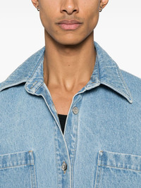 denim shirt Highlights - Blue - Front button fastening - Two chest patch pockets - Two side welt pockets - When buying this unisex item, keep in mind that it is graded in standard men's sizing. Imported Composition Polyester 100%, Regenerative Cotton 100%, Polyurethane 100% SIZE & FIT Model measurements Height 5 ft 9 in(1.76 m) Bust/Chest 32.28 in(82 cm) Hips 35.43 in(90 cm) Waist 25.19 in(64 cm) FittingInformation This piece is unisex – if you usually select men's sizing expect a loose fit throughout; if you usually select women's sizes, expect an oversized fit Sturdy and hard-wearing, this denim piece offers no stretch