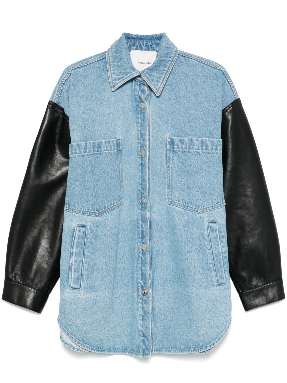 Denim and Regenerated Leather Shirt