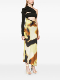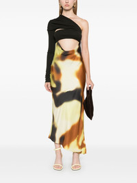draped-detail open-back midi dress Highlights - Brown/multicolour - Silk - Panelled design - Satin finish bodice - Melange effect at the top - Draped detailing - Open back - Concealed side zip fastening - Abstract pattern print - Cut-out detailing - Asymmetric neck - Single long sleeve - Slip silhouette - Straight hem - Mid-length Imported Composition Silk 100% SIZE & FIT Model measurements Height 5 ft 9 in(1.75 m) Bust/Chest 31.88 in(81 cm) Hips 34.64 in(88 cm) Waist 24.01 in(61 cm) FittingInformation Designed for a slim fit that sits just away from the body offering a close yet comfortable fit Made from a lightweight non-stretch fabric