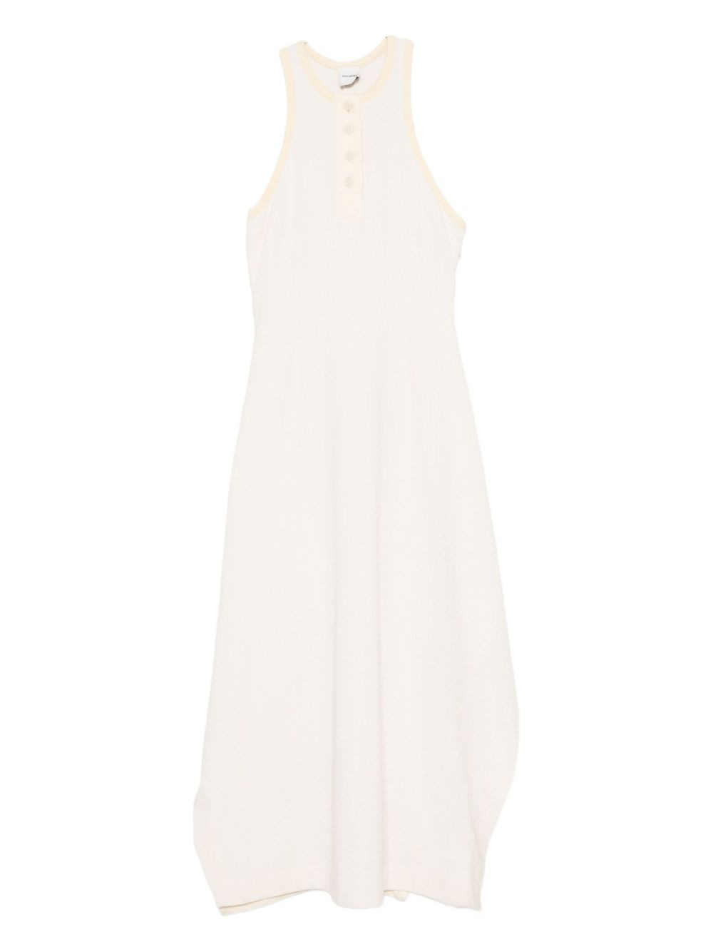 draped-hem tank midi dress Highlights - Cream - Sleeveless - Button placket - Asymmetrical hem - Cotton Imported Composition Cotton 60%, Polyester 27%, Polyamide 9%, Elastane 4% SIZE & FIT Model measurements Height 5 ft 10 in(1.79 m) Bust/Chest 31.88 in(81 cm) Hips 35.43 in(90 cm) Waist 23.62 in(60 cm) Washing instructions Dry Clean Only