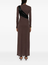 draped tie-belt dress Highlights - Brown - Long sleeves - Tie belt - Block draping - Crew neck Imported Composition Recycled Polyester 100% SIZE & FIT Model measurements Height 5 ft 11 in(1.8 m) Bust/Chest 32.67 in(83 cm) Hips 36.22 in(92 cm) Waist 24.4 in(62 cm) Washing instructions Machine Wash