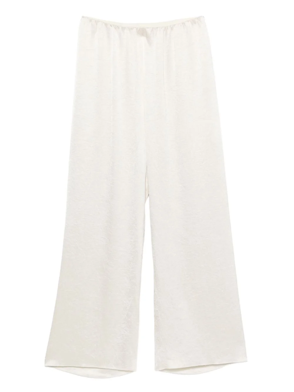 elastic-waist trousers Highlights - Off-white - Elasticated waistband - Tonal stitching - No pockets Imported Composition Triacetate 86%, Polyester 14% SIZE & FIT Model measurements Height 5 ft 11 in(1.8 m) Bust/Chest 31.49 in(80 cm) Hips 36.61 in(93 cm) Waist 24.4 in(62 cm) Washing instructions Read Manufacturer Guidelines