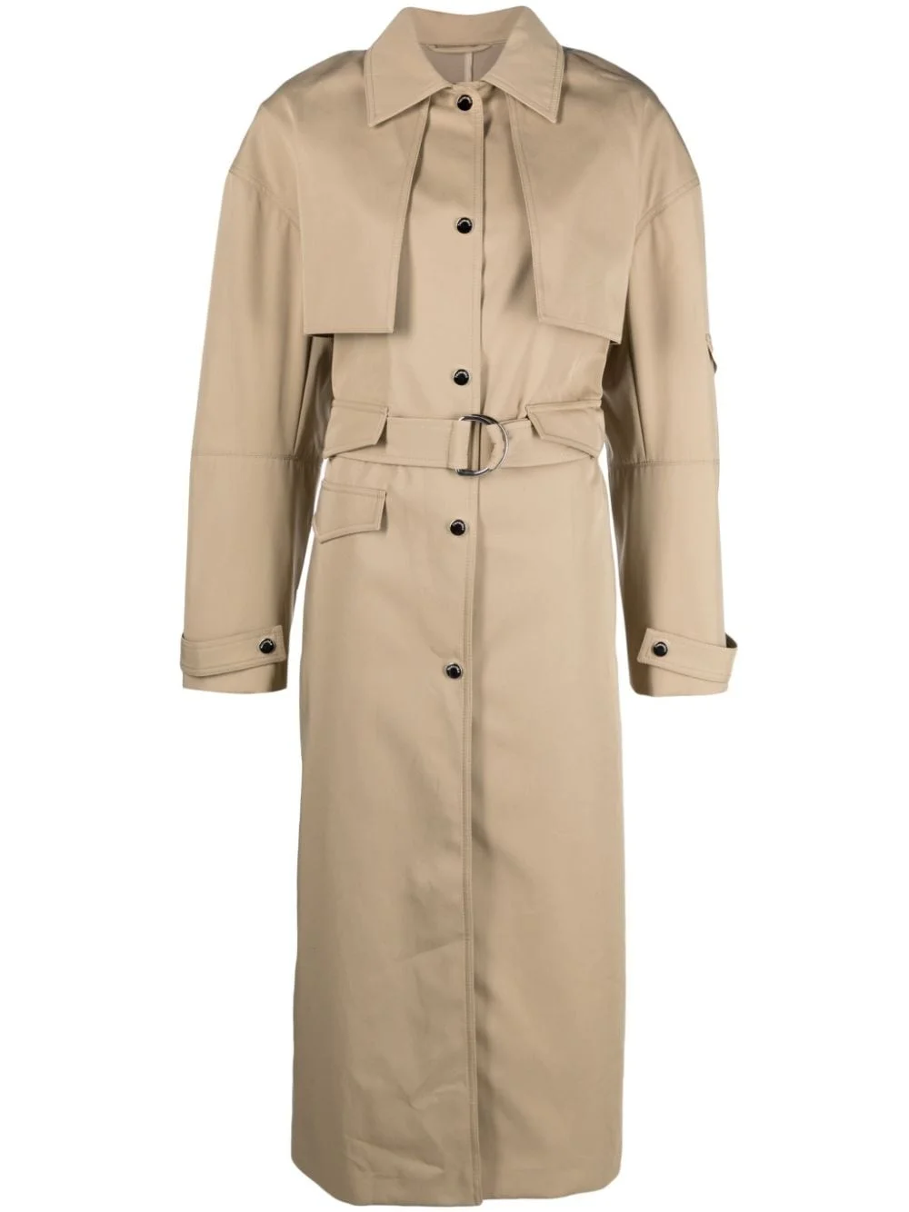 Elinor single-breasted trench coat This coat showcases Nanushka's penchant for classic outerwear. Clean-lined, it's crafted from organic cotton to a single-breasted silhouette with epaulettes, front pockets and a matching belt. Highlights - Beige - Organic cotton - Epaulettes - Classic collar - Front press-stud fastening - Long sleeves - Sleeve flap pocket - Press-stud fastening cuffs - Detachable waist belt - Three side flap pockets - Rear slit - Calf-length - Straight hem Imported Composition Organic Cotton 100%, Polyamide 83%, Elastane 17% Washing instructions Dry Clean Only