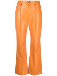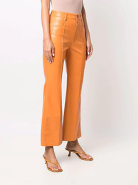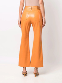 faux-leather flared trousers Highlights - Tangerine-orange - Faux-leather lining - Tonal stitching - Logo patch to the rear - High waist - Belt loops - Front button and zip fastening - Classic five pockets - Flared - Cropped leg Imported Composition Polyester 65%, Polyurethane 35% SIZE & FIT Model measurements Height 5 ft 9 in(1.74 m) Bust/Chest 32.28 in(82 cm) Hips 35.82 in(91 cm) Waist 24.01 in(61 cm) Washing instructions Dry Clean Only