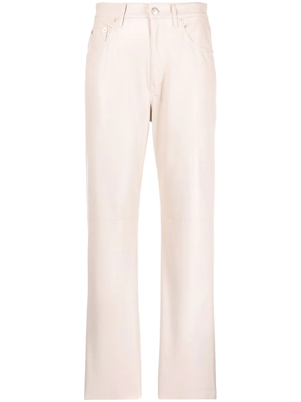 faux-leather straight leg trousers The muted cream colourway and understated silhouette of these Nanushka trousers encapsulate the brand's knack for designing contemporary pieces. A classic five-pocket design and straight leg cut ensure the pair withstands the test of time. Highlights - Cream - High-waisted - Front button and zip fastening - Belt loops - Classic five pockets - Straight leg Imported Composition Outer: Polyester 65%, Polyurethane 65% Filling: Polyester 100% SIZE & FIT Model measurements Height 5 ft 11 in(1.8 m) Bust/Chest 31.49 in(80 cm) Hips 36.61 in(93 cm) Waist 24.4 in(62 cm) FittingInformation This piece fits true to size. We recommend you get your regular size Cut for a slim fit Made with a mid-weight fabric Washing instructions Dry Clean Only