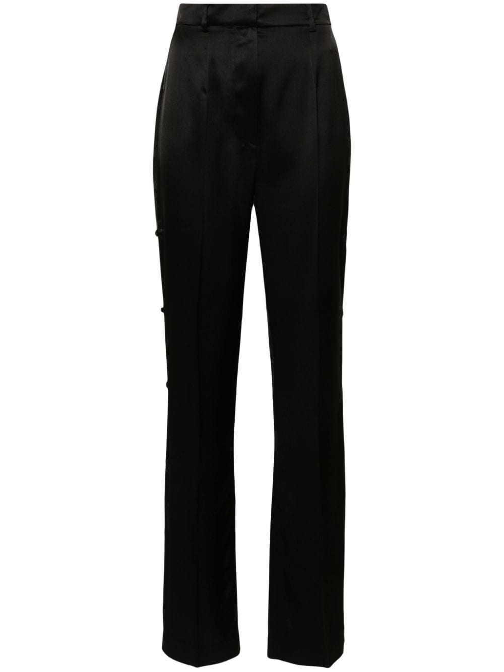 Felina straight-leg trousers Highlights - Black - Satin finish - High waist - Belt loops - Dart detailing - Pressed crease - Side slits with button fastening - Straight leg - Straight hem - Unlined - Concealed front button, hook and zip fastening Imported Composition Acetate 81%, Polyester 19% SIZE & FIT Model measurements Height 5 ft 10 in(1.78 m) Bust/Chest 31.49 in(80 cm) Hips 37 in(94 cm) Waist 23.62 in(60 cm) FittingInformation Designed for a straight-leg fit, these trousers allow for a close fit at the waist and an unrestricted, comfortable fit over the leg Made from a midweight non-stretch fabric This piece fits true to size – take your usual size Washing instructions Dry Clean Only