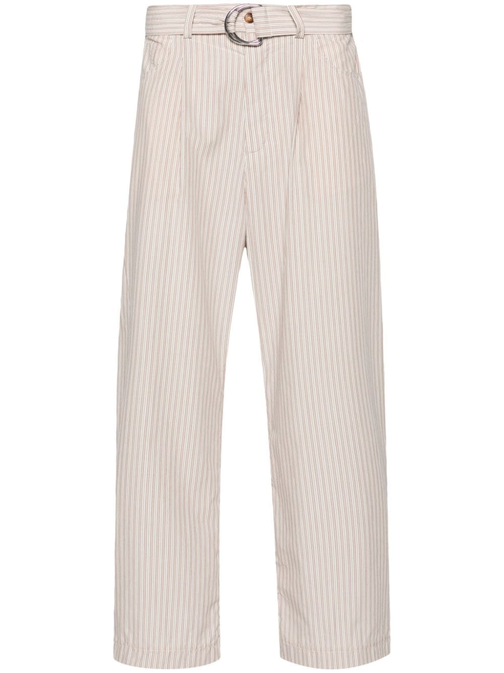 Ferre pinstriped belted trousers Highlights - Caramel brown - Ecru - Tencel™ blend - Pinstripe pattern - Detachable waist belt - Belt loops - Button fly fastening - Tapered leg - Classic five pockets - Straight hem Imported Composition TENCEL™ 55%, Cotton 45% SIZE & FIT Model measurements Height 6 ft 2 in(1.89 m) Bust/Chest 39.76 in(101 cm) Hips 37.4 in(95 cm) Waist 29.92 in(76 cm) FittingInformation Made from a midweight non-stretch fabric Washing instructions Dry Clean Only