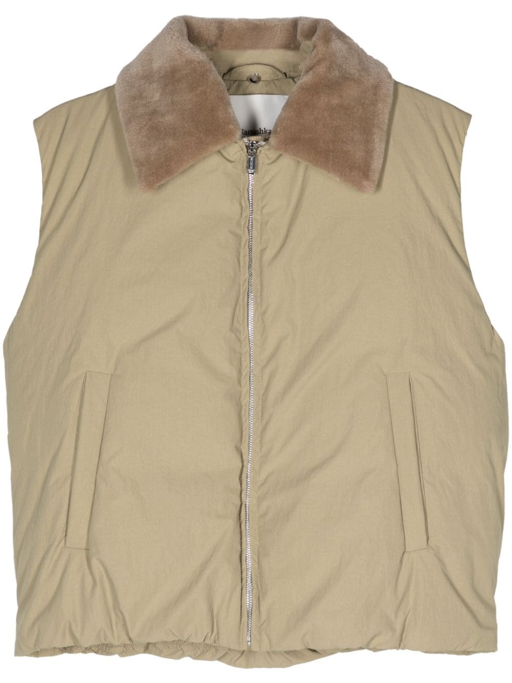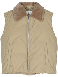 fleece-collar padded gilet Highlights - Sage green/beige - Recycled nylon - Padded design - Fleece-texture detachable collar - Spread collar - Front zip fastening - Sleeveless - Two side slit pockets - Full lining - Elasticated hem - When buying this unisex item, keep in mind that it is graded in standard men's sizing. Imported Composition Outer: Recycled Nylon 100%, Polyester 100% Lining: Polyester 85%, Polyurethane 15%