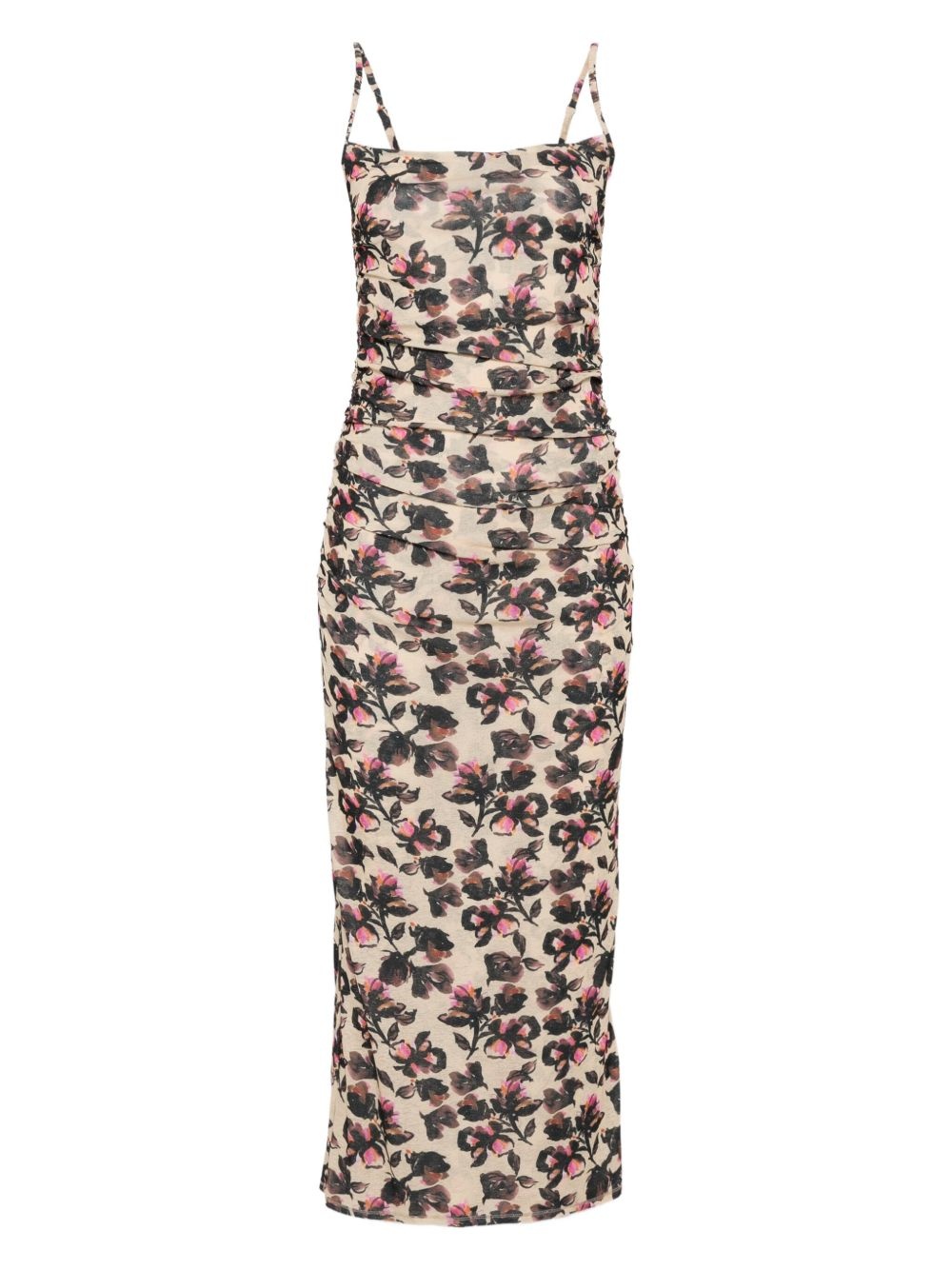floral-print ruched dress Highlights - Beige - Floral print - Ruched detailing - Spaghetti straps - Midi length Imported Composition Fabric 100% SIZE & FIT Model measurements Height 5 ft 10 in(1.77 m) Bust/Chest 33.07 in(84 cm) Hips 37 in(94 cm) Waist 24.8 in(63 cm) Washing instructions Read Manufacturer Guidelines