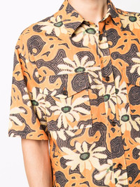floral print shirt Highlights - Orange / yellow / brown - Cotton-linen blend - All-over floral print - Classic collar - Front button fastening - Short sleeves - Two chest flap pockets - Straight hem Imported Composition Linen/Flax 58%, Viscose 25%, Cotton 17% SIZE & FIT Model measurements Height 6 ft 1 in(1.85 m) Bust/Chest 35.82 in(91 cm) Hips 37.79 in(96 cm) Waist 29.13 in(74 cm) Measurement CHEST 39.01 in(99.1 cm) SLEEVE LENGTH 10.51 in(26.7 cm) Shoulder Width 19.48 in(49.5 cm) LENGTH 30 in(76.2 cm) WAIST 40.98 in(104.1 cm) Washing instructions Dry Clean Only