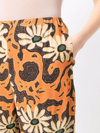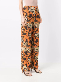 floral wide-leg trousers orange all-over floral print wide leg high waist elasticated waistband Imported Composition Viscose 100% SIZE & FIT Model measurements Height 5 ft 10 in(1.78 m) Bust/Chest 31.49 in(80 cm) Hips 36.22 in(92 cm) Waist 25.59 in(65 cm) Washing instructions Dry Clean Only