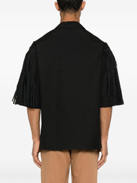 fringed polo shirt Highlights - Black - Front button placket - Polo collar - Drop shoulder - Short sleeves Imported Composition Cotton 100% SIZE & FIT Model measurements Height 6 ft 2 in(1.87 m) Bust/Chest 38.18 in(97 cm) Hips 36.61 in(93 cm) Waist 29.13 in(74 cm) FittingInformation Designed for a loose fit, this polo shirt offers additional room throughout Made from a midweight non-stretch fabric