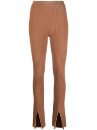 front-slit leggings These ribbed knit leggings from Nanushka boast a high-waisted silhouette and are finished with front slits. Highlights - Chestnut brown - Recycled polyamide blend - Ribbed knit - High waist - Front slit Imported Composition Recycled Viscose 52%, Recycled Polyamide 46%, Elastane 2% SIZE & FIT Model measurements Height 5 ft 11 in(1.8 m) Bust/Chest 31.49 in(80 cm) Hips 36.22 in(92 cm) Waist 25.59 in(65 cm) FittingInformation Designed for a close fit throughout The elasticated waist allows for a comfortable fit Made with a midweight knit, this piece offers some stretch This piece fits true to size – take your usual size Washing instructions Dry Clean Only