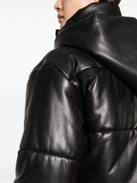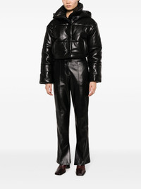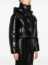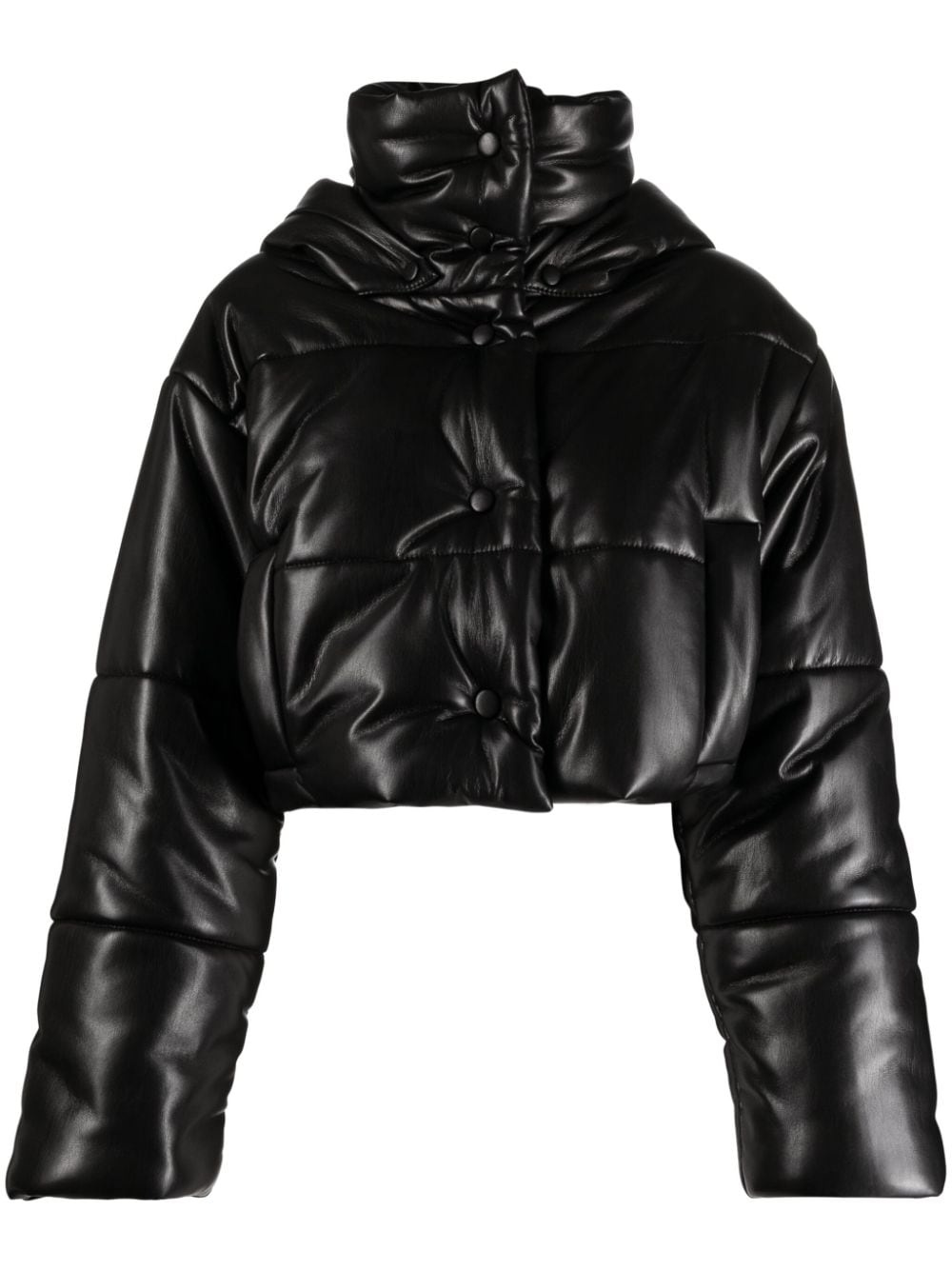 hooded cropped puffer jacket Cut to a cropped silhouette, this Nanushka puffer jacket is equipped with a funnel neck silhouette and a classic hood for added protection from the elements. Highlights - Black - Recycled polyester - Funnel neck - Classic hood - Front button fastening - Long sleeves - Two side slit pockets - Cropped Imported Composition Recycled Polyester 100%, Polyurethane 100% SIZE & FIT Model measurements Height 5 ft 10 in(1.78 m) Bust/Chest 30.7 in(78 cm) Hips 36.22 in(92 cm) Waist 25.59 in(65 cm) FittingInformation Designed for a boxy fit, intended for a loose fit throughout Made from a padded non-stretch fabric, giving it no natural elasticity This piece fits true to size – take your usual size Washing instructions Dry Clean Only