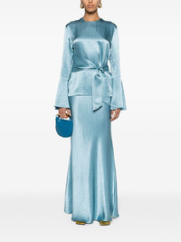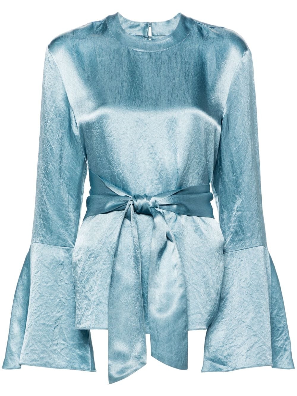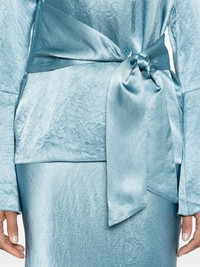Ilon belted blouse Highlights - Aqua blue - Satin finish - Crinkled finish - Round neck - Rear button fastening - Long sleeves with flared cuffs - Belted waist - Straight hem Imported Composition Acetate 100% SIZE & FIT Model measurements Height 5 ft 10 in(1.78 m) Bust/Chest 33.07 in(84 cm) Hips 36.61 in(93 cm) Waist 24.8 in(63 cm) FittingInformation The tie fastening gives an adaptable and personalised fit Made from a midweight non-stretch fabric Washing instructions Dry Clean Only