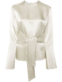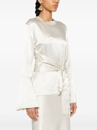 Ilone blouse Highlights - Ecru - Naia™ cellulosic fibres - Satin finish - Crinkled finish - Crew neck - Rear button fastening - Bell sleeves - Tied waist - Straight hem Imported Composition NAIA™ Cellulosic Fiber 100% SIZE & FIT Model measurements Height 5 ft 10 in(1.78 m) Bust/Chest 33.07 in(84 cm) Hips 36.61 in(93 cm) Waist 24.8 in(63 cm) FittingInformation Designed for a relaxed fit, this piece allows for comfort and movement when worn The tie fastening gives an adaptable and personalised fit Made from a midweight non-stretch fabric