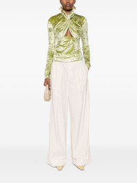 Iride twist-detailing velvet top Highlights - Sage green - Crushed velvet - Twist detailing - Cut-out detailing - Long sleeves - Rear button fastening - Straight hem Imported Composition Acetate 79%, Polyester 18%, Elastane 3% Lining: Polyester 100% SIZE & FIT Model measurements Height 5 ft 11 in(1.8 m) Bust/Chest 31.49 in(80 cm) Hips 36.61 in(93 cm) Waist 24.4 in(62 cm) Measurement SLEEVE LENGTH 25.98 in(66 cm) LENGTH 19.68 in(50 cm) BUST 32.28 in(82 cm) Shoulder Width 14.17 in(36 cm) FittingInformation Designed for a slim fit that sits just away from the body offering a close yet comfortable fit Made from a midweight fabric This piece fits true to size – take your usual size Washing instructions Machine Wash