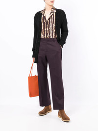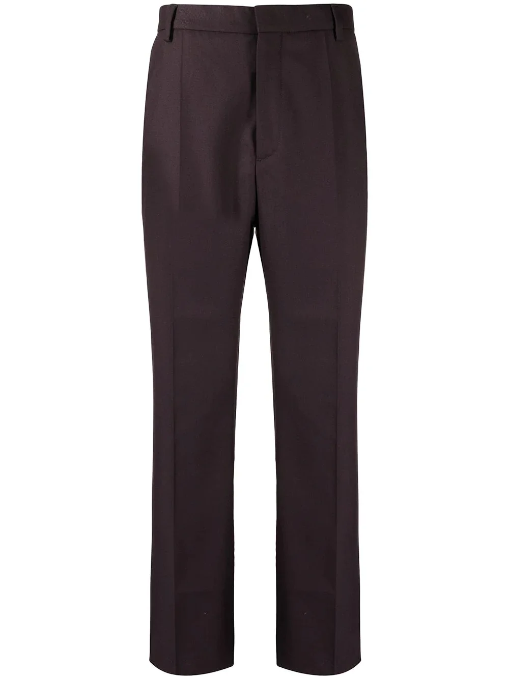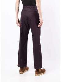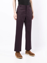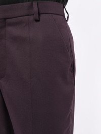 Jun twill straight-leg trousers aubergine purple recycled polyester blend/cotton belt loops concealed front fastening two side slit pockets straight leg Imported Composition Outer: Recycled Polyester 69%, Viscose 30%, Elastane 1% Lining: Cotton 100% SIZE & FIT Model measurements Height 6 ft 0 in(1.84 m) Bust/Chest 35.43 in(90 cm) Hips 35.82 in(91 cm) Waist 28.74 in(73 cm) FittingInformation This piece fits true to size. We recommend you get your regular size Designed for a slim fit at the waist and loose over the leg Made with a mid-weight fabric Washing instructions Dry Clean Only