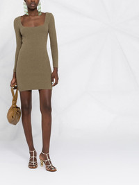 Leah square-neck knitted dress dusty green knitted construction slim cut square neck long sleeves straight hem thigh-length Imported Composition Outer: Cotton 73%, Nylon 27% SIZE & FIT Model measurements Height 5 ft 11 in(1.8 m) Bust/Chest 32.67 in(83 cm) Hips 36.22 in(92 cm) Waist 24.4 in(62 cm) Measurement LENGTH 35.43 in(90 cm) Washing instructions Dry Clean Only