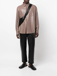Maven straight-leg trousers With an eco-conscious mindset, Nanushka creates timeless pieces from innovative materials. These Maven trousers are crafted in the brand's alternative to leather and boast a classic straight-leg silhouette. Highlights - Black - Recycled polyester blend - Drawstring waist - Front button and zip fastening - Slip pockets to the sides - Two rear welt pockets - Straight leg Imported Composition Viscose 100%, Recycled Polyester 56%, Polyurethane 44% SIZE & FIT Model measurements Height 6 ft 0 in(1.84 m) Bust/Chest 35.82 in(91 cm) Hips 37 in(94 cm) Waist 28.34 in(72 cm) FittingInformation This piece fits true to size. We recommend you get your regular size Designed for a slim fit at the waist and loose over the leg Made with a mid-weight fabric Washing instructions Dry Clean Only