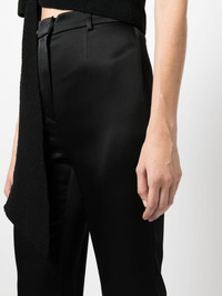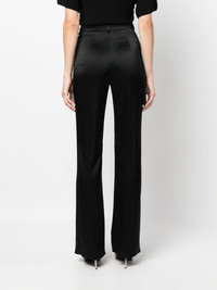 Leena flared satin trousers Nanushka’s Leena trousers are cut from signature slip satin made with recycled fibres for a lower impact; it enhances the sleek silhouette with a lustrous sheen. Highlights - Black - Recycled polyester blend - Satin finish - Belt loops - Concealed front fastening - High-waisted Made in Italy Composition Acetate 81%, Recycled Polyester 19% SIZE & FIT Model measurements Height 5 ft 11 in(1.8 m) Bust/Chest 31.49 in(80 cm) Hips 36.22 in(92 cm) Waist 25.59 in(65 cm) FittingInformation Designed with a flared hem, these trousers allow for a close fit at the waist with a slim fit over the leg and widening towards the hem Made from a midweight fabric Washing instructions Dry Clean Only