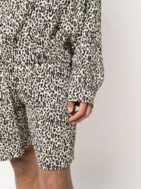 leopard-print track shorts Highlights - Creme-white/jet-black - All-over leopard print - Drawstring fastening - Two diagonal pockets to the sides Imported Composition Elastane 100%, Viscose 100% SIZE & FIT Model measurements Height 6 ft 2 in(1.87 m) Bust/Chest 38.18 in(97 cm) Hips 36.61 in(93 cm) Waist 29.13 in(74 cm) FittingInformation This piece fits true to size. We recommend you get your regular size Designed for a slim fit at the waist and loose over the leg Made with a lightweight fabric Washing instructions Dry Clean Only