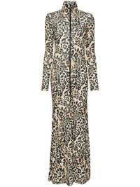 leopard-print zip-up maxi dress Highlights - Beige/black - Recycled polyester - Leopard print - Roll neck - Front zip fastening - Long sleeves - Fitted waistline - Flared - Front slit - Long length Imported Composition Recycled Polyester 100% SIZE & FIT Model measurements Height 5 ft 10 in(1.78 m) Bust/Chest 33.07 in(84 cm) Hips 36.61 in(93 cm) Waist 24.8 in(63 cm) FittingInformation Made from a midweight non-stretch fabric, this piece offers minimal elasticity when worn Washing instructions Dry Clean Only