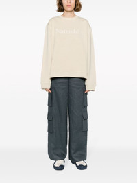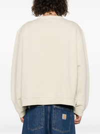 logo-embroidered cotton sweatshirt Nanushka takes a casual approach with this light-beige sweatshirt. Crafted from a blend of recycled and organic cotton to a relaxed fit, its embroidered logo adorns the front of the design. Highlights - Light beige - Recycled cotton-organic cotton blend - Embroidered logo at the chest - Crew neck - Drop shoulder - Long sleeves - Ribbed cuffs and hem - Straight hem - When buying this unisex item, keep in mind that it is graded in standard men's sizing. Imported Composition Organic Cotton 50%, Recycled Cotton 50% SIZE & FIT Model measurements Height 5 ft 10 in(1.79 m) Bust/Chest 32.67 in(83 cm) Hips 34.25 in(87 cm) Waist 24.4 in(62 cm) FittingInformation This unisex piece is designed for a loose fit whether you usually select women's or men's sizes Made with a midweight knit, this piece offers some stretch