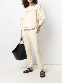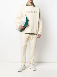 logo-embroidered track pants Highlights - Cream white - Organic cotton - Jersey fleece - High waist - Rear patch pocket - Embroidered logo to the rear - Two side slit pockets - Elasticated drawstring waistband - When buying this unisex item, keep in mind that it is graded in standard men's sizing. Imported Composition Organic Cotton 100% SIZE & FIT Model measurements Height 6 ft 2 in(1.87 m) Bust/Chest 37.79 in(96 cm) Hips 37.79 in(96 cm) Waist 30.31 in(77 cm) FittingInformation This piece fits true to size. We recommend you get your regular size Designed to be loose over the leg with a fitted waist and hem Made with a mid-weight fabric Washing instructions Machine Wash