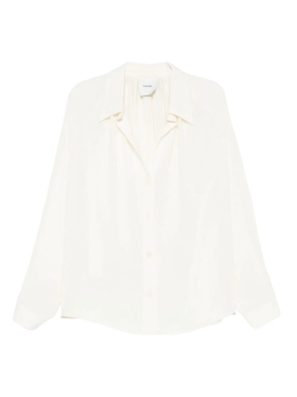 long-sleeve shirt Highlights - Ecru - Front button fastening - Long sleeves - Classic collar Imported Composition Triacetate 100% SIZE & FIT Model measurements Height 5 ft 11 in(1.8 m) Bust/Chest 31.49 in(80 cm) Hips 36.61 in(93 cm) Waist 24.4 in(62 cm) Washing instructions Read Manufacturer Guidelines