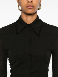 long-sleeved buttoned polo shirt Highlights - Black - Polo collar - Long sleeves - Button fastening - Ribbed texture Imported Composition Recycled Polyester 100% SIZE & FIT Model measurements Height 5 ft 10 in(1.77 m) Bust/Chest 33.07 in(84 cm) Hips 37 in(94 cm) Waist 24.8 in(63 cm) FittingInformation Designed for a close fit throughout Made from a midweight non-stretch fabric, this piece offers minimal elasticity when worn