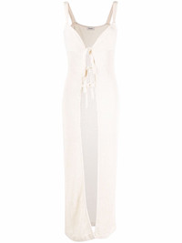 long sleeveless knit vest Highlights - Creme beige - Cotton - Perforated detailing - Front tie fastening - Sleeveless - Long length Imported Composition Cotton 78%, Polyamide 22% SIZE & FIT Model measurements Height 5 ft 9 in(1.75 m) Bust/Chest 32.67 in(83 cm) Hips 36.22 in(92 cm) Waist 24.8 in(63 cm) FittingInformation This piece fits true to size. We recommend you get your regular size Designed for a close fit at the bust and waist, but loose at the hip Made with a mid-weight fabric Washing instructions Hand Wash