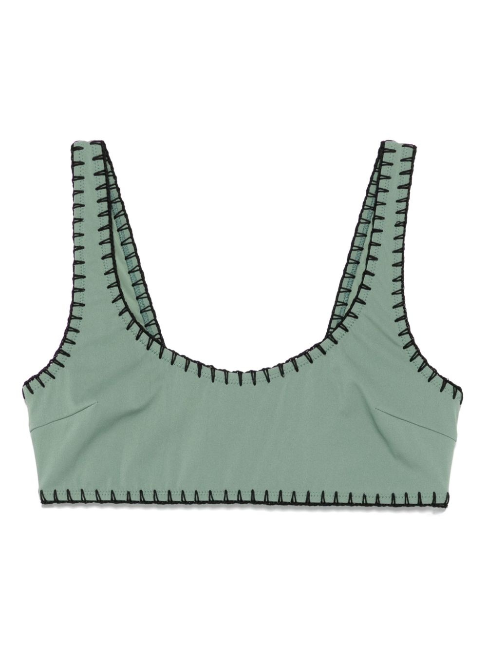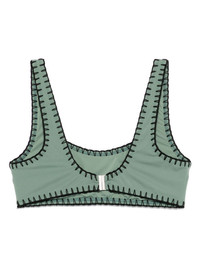 Malti bikini top Highlights - Sea green - Rear clasp fastening - Whipstitch trim - U-neck - Be mindful to try on swimwear over your own garments. Imported Composition Outer: Recycled Nylon 80%, Spandex/Elastane 20% Lining: Recycled Nylon 85%, Spandex/Elastane 15%