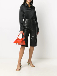 Mandine satin long-sleeved shirt Highlights - Black - Straight-point collar - Front button fastening - Buttoned cuffs - Curved hem Imported Composition Triacetate 78%, Polyester 22% SIZE & FIT Model measurements Height 5 ft 10 in(1.78 m) Bust/Chest 33.07 in(84 cm) Hips 35.82 in(91 cm) Waist 25.98 in(66 cm) Measurement Shoulder Width 14.17 in(36 cm) FittingInformation This piece fits true to size. We recommend you get your regular size Cut for a loose fit Made with a mid-weight fabric Washing instructions Hand Wash