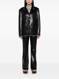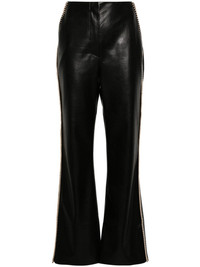 Manola tailored trousers Highlights - Black - Faux leather - Tailored design - Whipstitch trim - Concealed front button, hook and zip fastening - Flared - Two side slit pockets - Two rear welt pockets - Straight hem Imported Composition Lining: Acetate 100% Outer: Polyester 100%, Polyurethane 100%, Cotton 100% SIZE & FIT Model measurements Height 5 ft 11 in(1.8 m) Bust/Chest 33.07 in(84 cm) Hips 37.4 in(95 cm) Waist 25.19 in(64 cm) FittingInformation Designed for a straight-leg fit, these trousers allow for a close fit at the waist and an unrestricted, comfortable fit over the leg Made from a midweight non-stretch fabric, this piece offers minimal elasticity when worn This piece fits true to size – take your usual size Washing instructions Dry Clean Only