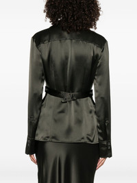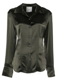 Nathalie fitted shirt Highlights - Dark green - Button fastening - Collared neckline - Long sleeves - Back button-tie belt Imported Composition Acetate 74%, Polyester 26% SIZE & FIT Model measurements Height 5 ft 10 in(1.79 m) Bust/Chest 31.88 in(81 cm) Hips 35.43 in(90 cm) Waist 23.62 in(60 cm) Washing instructions Dry Clean Only