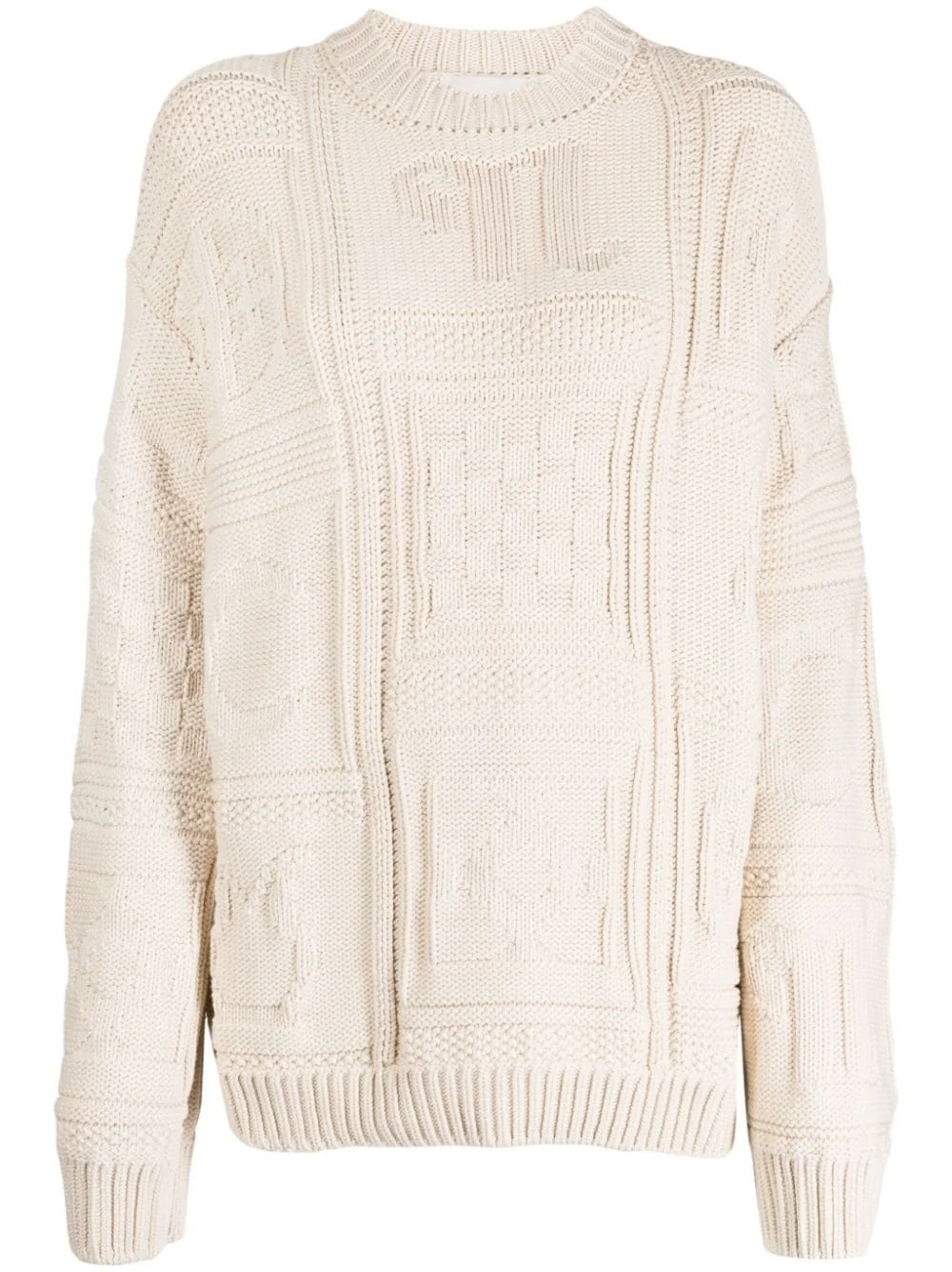Nicolle jacquard-knit jumper Nanushka honours its Hungarian roots with this Nicolle jumper. It's artfully knitted from a soft blend of organic cotton yarns and decorated with a jacquard pattern that nods to the traditional Kopjafa – a wooden totem carved with geometrical motifs often associated to a complex symbol system. Highlights - Cream white - Organic cotton blend - Patterned jacquard - Crew neck - Drop shoulder - Long sleeves - Ribbed cuffs and hem Imported Composition Organic Cotton 55%, Polyamide 45% SIZE & FIT Model measurements Height 5 ft 10 in(1.78 m) Bust/Chest 30.31 in(77 cm) Hips 34.64 in(88 cm) Waist 24.01 in(61 cm) FittingInformation Designed to be unstructured, offering a loose fit throughout Made with a heavyweight knit, this piece offers some stretch This piece fits true to size – take your usual size Washing instructions Hand Wash
