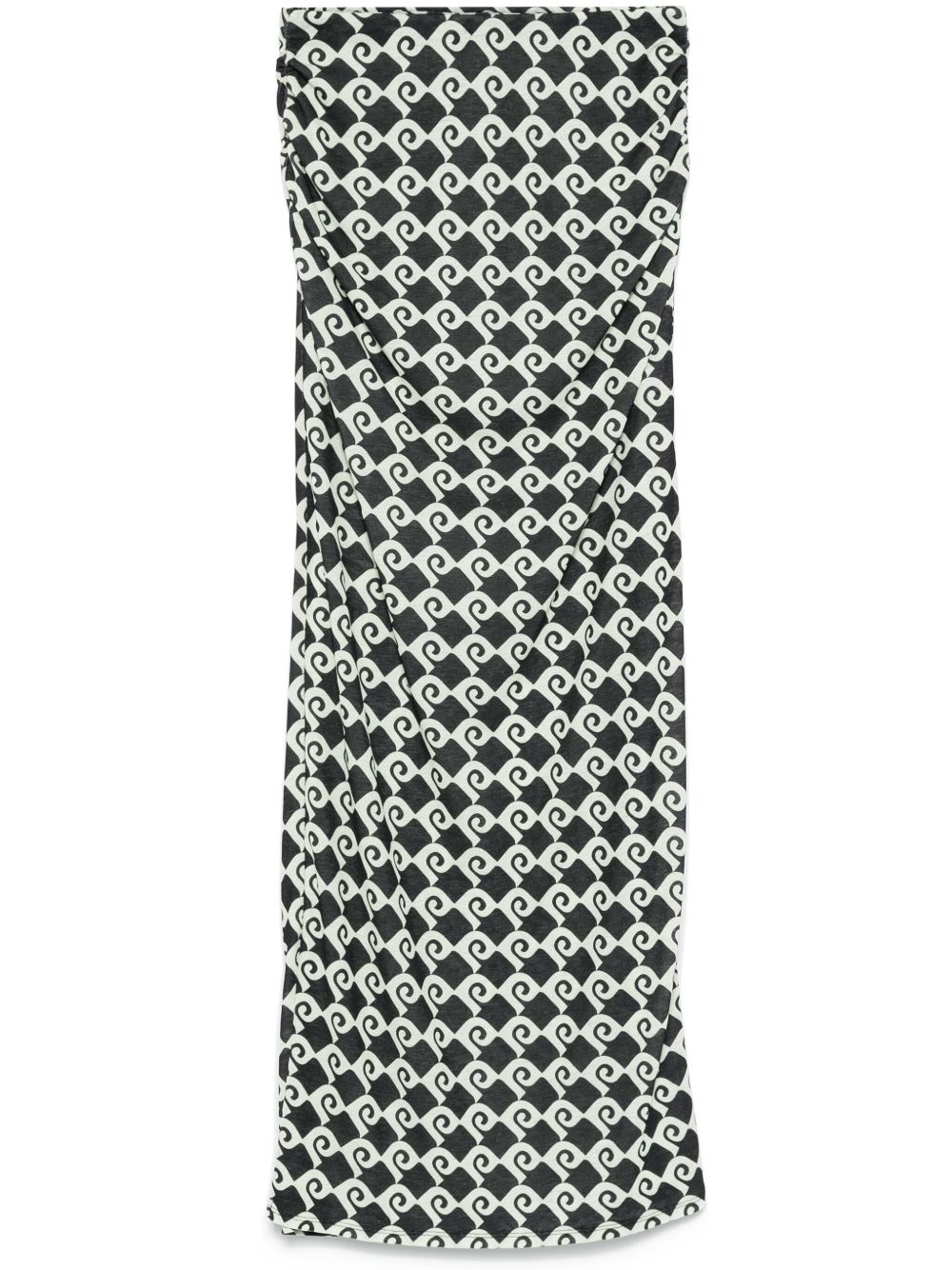 Norine midi skirt Highlights - Dark green - Elasticated waistband - Side slits - Geometric-pattern print - Ruched detailing Imported Composition Outer: Recycled Polyester 100% SIZE & FIT Model measurements Height 5 ft 10 in(1.78 m) Bust/Chest 33.46 in(85 cm) Hips 36.22 in(92 cm) Waist 23.22 in(59 cm) FittingInformation This maxi-length skirt is intended to be worn high on the waist Made from a midweight stretch fabric, this piece offers elasticity and flexibility when worn
