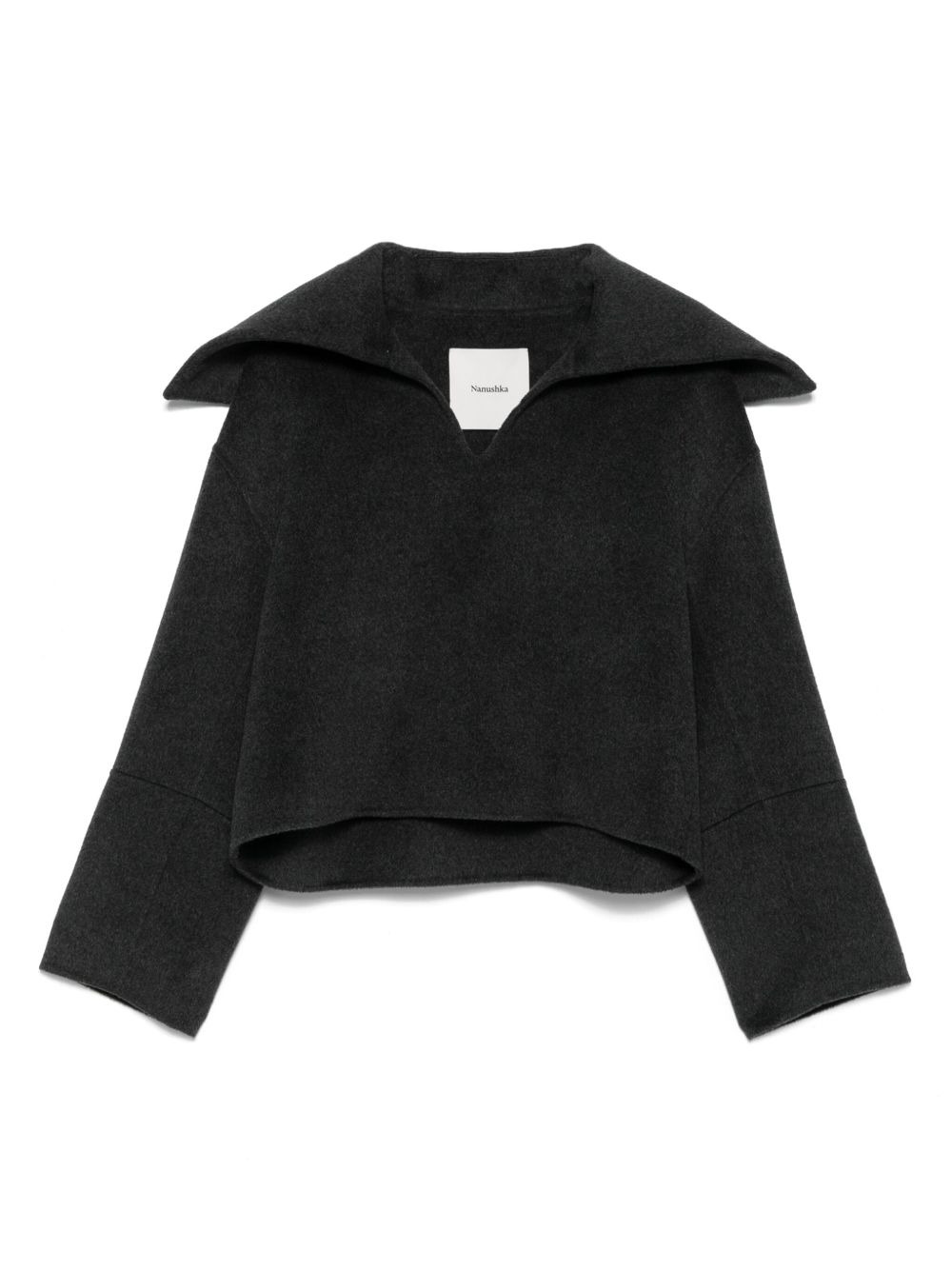 oversize-collar sweater Highlights - Grey - Wide collar - Cropped hem - Long sleeves - V-neck Imported Composition Fabric 100% SIZE & FIT Model measurements Height 5 ft 10 in(1.77 m) Bust/Chest 33.07 in(84 cm) Hips 37 in(94 cm) Waist 24.8 in(63 cm) Washing instructions Dry Clean Only
