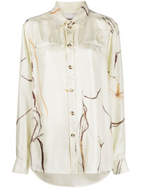 oversize printed silk shirt Nanushka brings an artistic flair to this long-sleeved silk shirt, decorating it with an all-over abstract print. The oversized cut and balloon sleeves create a relaxed silhouette. Highlights - Cream white - Silk - Abstract pattern print - Classic collar - Two front jetted pockets - Long sleeves - Buttoned cuffs - Front button fastening - Oversized style Imported Composition Silk 100% SIZE & FIT Model measurements Height 5 ft 10 in(1.77 m) Bust/Chest 31.49 in(80 cm) Hips 33.85 in(86 cm) Waist 22.44 in(57 cm) Washing instructions Dry Clean Only