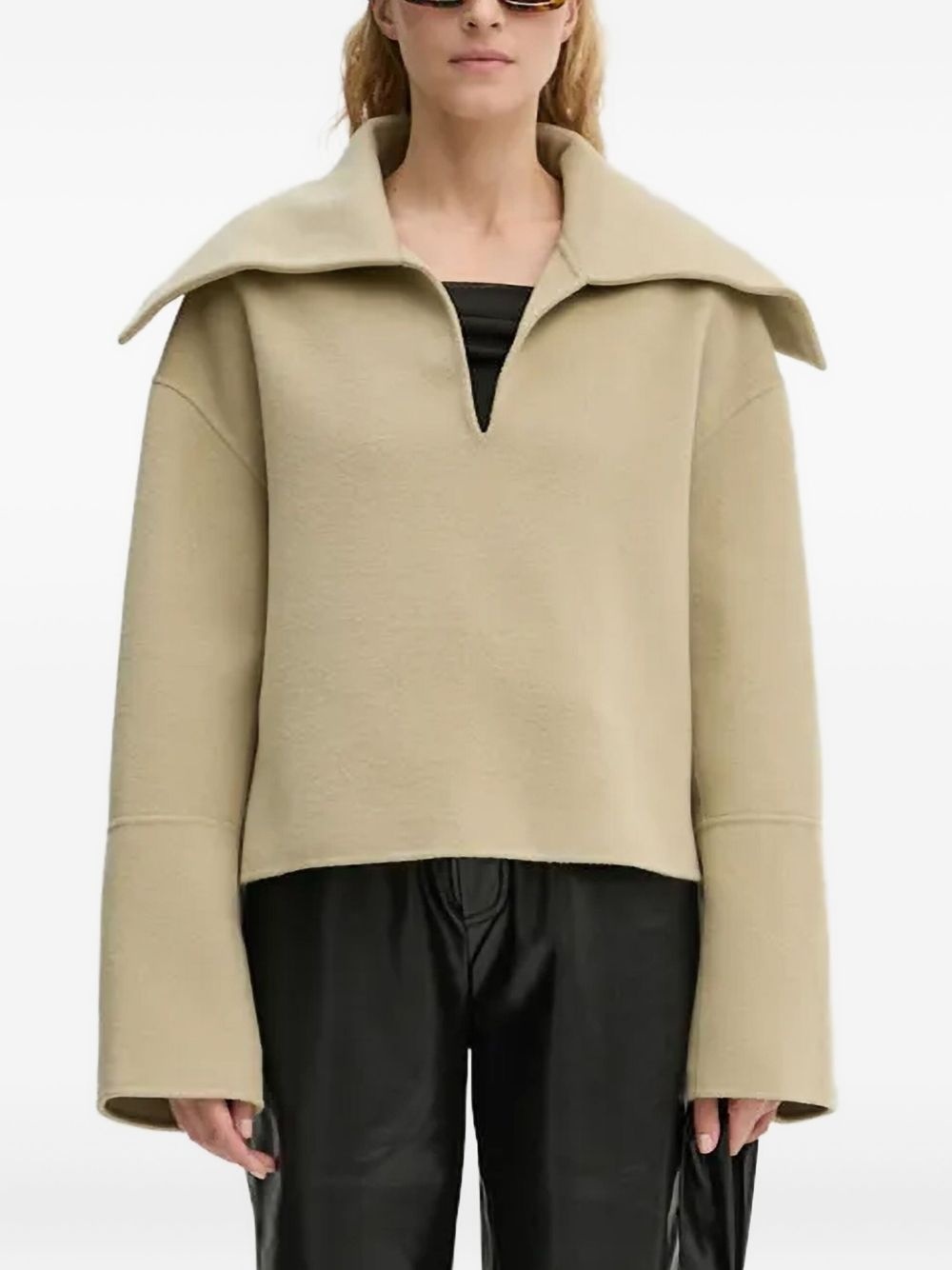 oversized-collar top Highlights - Beige - Oversized collar - Long sleeves - Wide cuffs Imported Composition Wool 90%, Silk 10% Washing instructions Read Manufacturer Guidelines