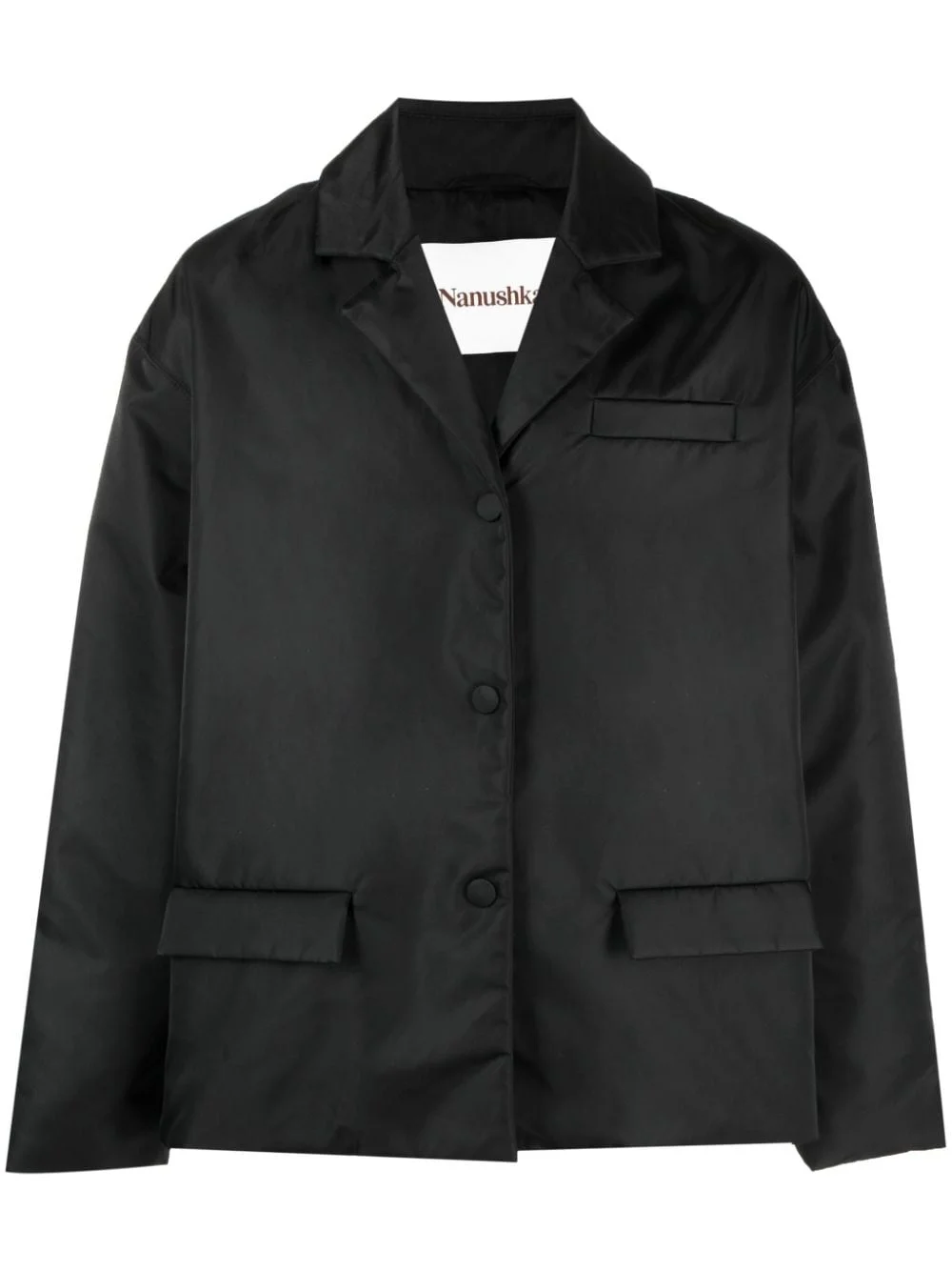 padded single-breasted blazer Cut to a boxy silhouette, this Nanushka blazer is elevated through the padded construction, showcasing the brand's penchant for a contemporary take on timeless garments. Highlights - Black - Padded design - Classic lapels - Front button fastening - Two front flap pockets - Long sleeves - Straight hem - When buying this unisex item, keep in mind that it is graded in standard men's sizing. Imported Composition ECONYL® 100% SIZE & FIT Model measurements Height 5 ft 11 in(1.8 m) Bust/Chest 31.49 in(80 cm) Hips 36.61 in(93 cm) Waist 24.4 in(62 cm) FittingInformation This unisex piece is designed for a loose fit whether you usually select women's or men's sizes The vented hem offers movement at the rear Made from a midweight fabric Washing instructions Dry Clean Only
