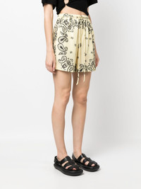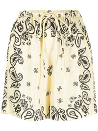 paisley-print silk shorts These Nanushka shorts are cut from silk to a relaxed silhouette. They feature a paisley print and are secured with a drawstring fastening. Highlights - Yellow/black - Silk - Paisley print - Elasticated drawstring waistband - Two side slit pockets - Thigh-length Imported Composition Silk 100% SIZE & FIT Model measurements Height 5 ft 11 in(1.8 m) Bust/Chest 31.49 in(80 cm) Hips 36.22 in(92 cm) Waist 25.59 in(65 cm) FittingInformation Designed for a relaxed, roomy fit The elasticated waist allows for a comfortable fit Made from a lightweight fabric Washing instructions Dry Clean Only