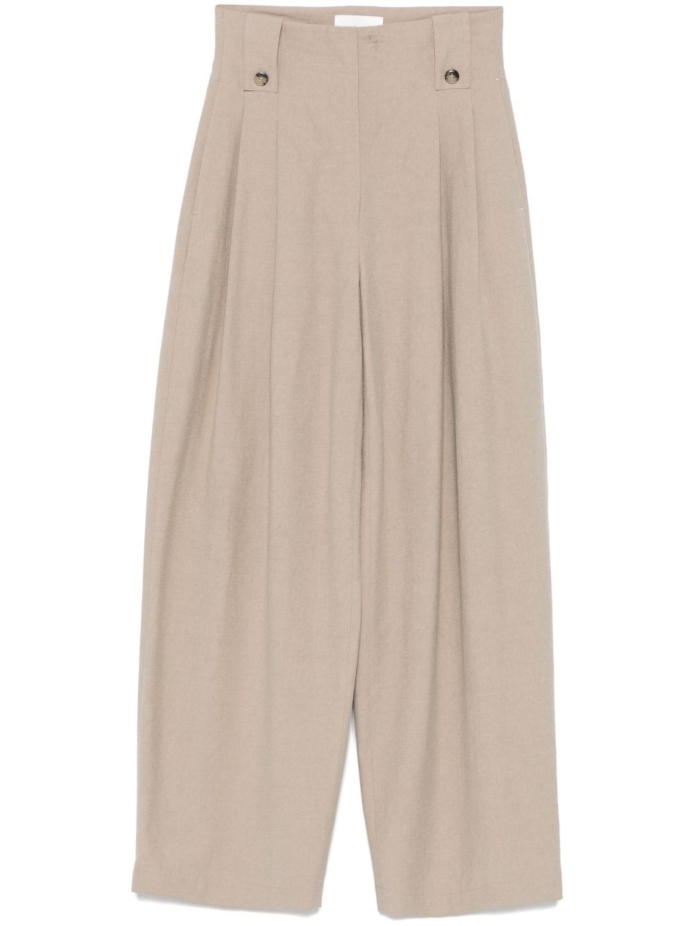 pleated wide-leg trousers Highlights - Light grey - Concealed fly and button fastening - Belt loops - Two side slash pockets - Two rear jetted pockets Imported Composition Silk 90%, Polyamide 10% SIZE & FIT Model measurements Height 5 ft 9 in(1.76 m) Bust/Chest 31.1 in(79 cm) Hips 36.61 in(93 cm) Waist 24.8 in(63 cm)