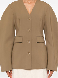 puff-sleeve jacket Highlights - Brown - V-neck - Button fastening - Fitted waist - Puff sleeves Imported Composition Fabric 100% SIZE & FIT Model measurements Height 5 ft 10 in(1.77 m) Bust/Chest 33.07 in(84 cm) Hips 37 in(94 cm) Waist 24.8 in(63 cm) Washing instructions Read Manufacturer Guidelines