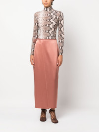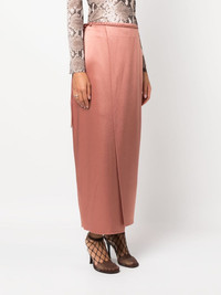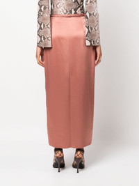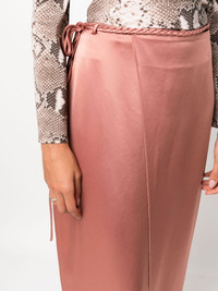 Racha wrap skirt Defined by its lustrous satin construction, the Racha skirt showcases Nanushka's sleek aesthetic. It fastens at the waist with braided self-ties and falls to a straight silhouette interrupted by a high-cut side split. Highlights - Terracotta brown - Recycled polyester blend - Satin finish - High-waisted - Braid detailing - Wrap design - Side tie fastening - Side slit - Calf-length Imported Composition Acetate 81%, Recycled Polyester 19% SIZE & FIT Model measurements Height 5 ft 9 in(1.76 m) Bust/Chest 31.88 in(81 cm) Hips 35.43 in(90 cm) Waist 24.8 in(63 cm) FittingInformation Designed for a wraparound style that can be adjusted to your preference The tie fastening gives an adaptable and personalised fit Made from a lightweight non-stretch fabric This piece fits true to size – take your usual size Washing instructions Machine Wash