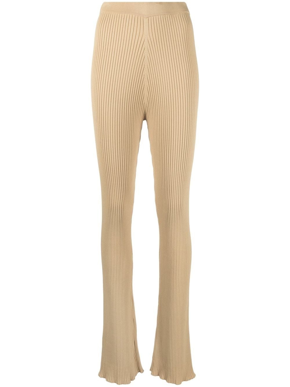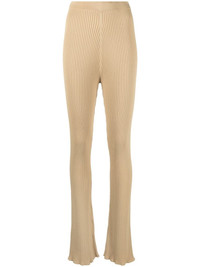 ribbed-knit flared trousers Crafted with a ribbed knit that accentuates their elongating silhouette, these Nanushka trousers slightly flare at the hem with a lettuce finish that lends the pair a playful touch. Imported Composition Outer: Viscose 63%, Nylon 37% SIZE & FIT Model measurements Height 5 ft 10 in(1.77 m) Bust/Chest 31.49 in(80 cm) Hips 33.85 in(86 cm) Waist 22.44 in(57 cm) Washing instructions Dry Clean Only