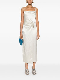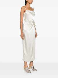ruched-detailing satin midi dress Highlights - Ecru - Satin weave - Crinkled finish - Wrap design - Cowl neck - Concealed side zip fastening - Adjustable spaghetti straps - Ruched detailing - Straight hem - Mid-length Imported Composition Acetate 100% SIZE & FIT Model measurements Height 5 ft 10 in(1.78 m) Bust/Chest 33.07 in(84 cm) Hips 36.61 in(93 cm) Waist 24.8 in(63 cm) FittingInformation The adjustable shoulder straps allow for a preferred fit when worn Made from a midweight non-stretch fabric