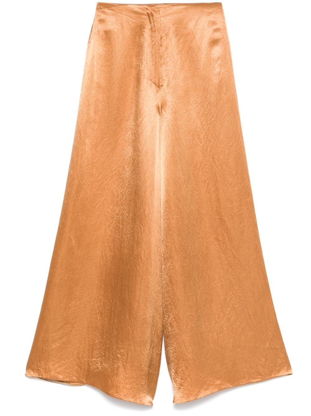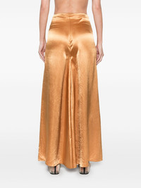 satined trousers Highlights - Cognac brown - Concealed rear hook and zip fastening - Wide leg Imported Composition Fabric 100% SIZE & FIT Model measurements Height 5 ft 10 in(1.78 m) Bust/Chest 33.46 in(85 cm) Hips 36.22 in(92 cm) Waist 23.22 in(59 cm) FittingInformation Designed with a wide-leg cut, these trousers allow for a close fit at the waist and offer a loose and roomy fit over the leg Made from a lightweight non-stretch fabric
